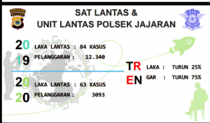 Lebih lanjut, kata mantan Kasat Reskrim Polres Malteng ditahun 2020 angka lakalantas berjumlah 63 kasus dengan jumlah pelanggaran 3093 kasus , bila dibandingkan dengan jumlah kasus lakalantas ditahun 2019 maka terjadi penurunan 21 kasus dari total keselurahan 84 kasus yang ada.